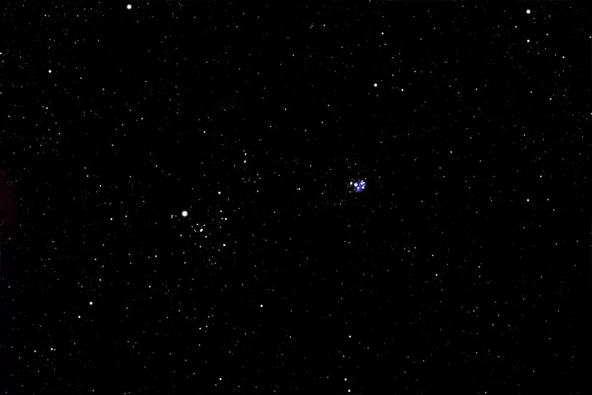L’amas des Pléiades est sans nul doute le plus bel amas ouvert du ciel, et l'un de mes objets célestes préférés. Très facilement repérable à l'œil nu, il capte le regard sans même avoir besoin de le chercher. 5 étoiles sont très rapidement visibles, puis, quand l'œil s'accommode, il est facile d'en voir 7 ou même 9 lorsque sa vue est très bonne. Dans la mythologie grecque, les Pléiades sont sept sœurs, filles du Titan Atlas et de l'Océanide Pléioné, sœurs des Hyades (un autre amas ouvert proche, d'ailleurs) : Astérope, Mérope, Électre, Maïa, Taygète, Céléno et Alcyone. Les 9 étoiles les plus brillantes de l'amas tirent leur nom de ces 7 sœurs et de leurs parents.