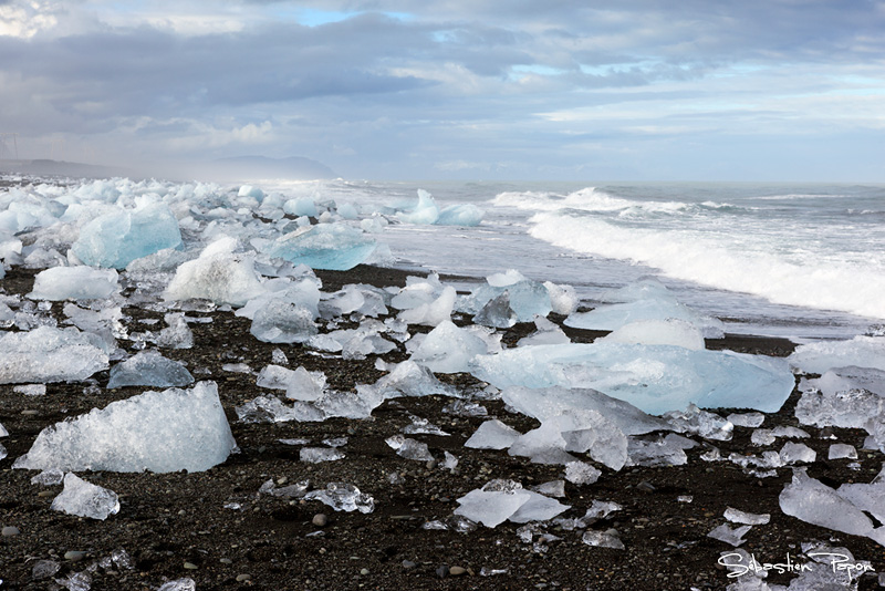 Les glaçons sur la plage sont encore plus nombreux à cette heure-ci. Impressionnant !