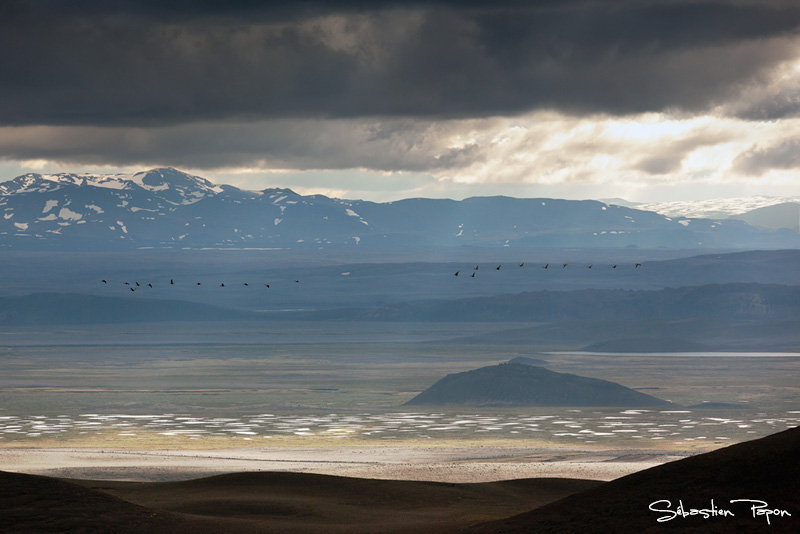 Nous quittons la route n°1 pour une piste à travers le plateau de Möðrudalsöræfi. En quelques kilomètres, le paysage devient austère : tout n'est plus que roches, graviers, sable, lave... Ce décor sombre et silencieux a véritablement quelque chose d'inquiétant. Au milieu de ce désert minéral, l'impression est telle qu'on se croirait parfois sur la Lune... À tel point que les responsables de la NASA y ont envoyé des astronautes préparer leurs futures missions lunaires en 1967 !